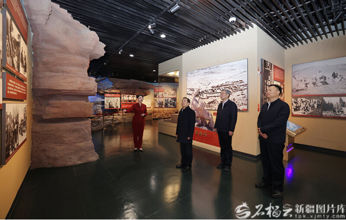 11月26日,自治区党委书记、兵团党委第一书记、第一政委陈小江在新疆兵团军垦博物馆,参观了解兵团建设发展光辉历程和新时代取得的重大成就。石榴云/新疆日报记者崔志坚摄