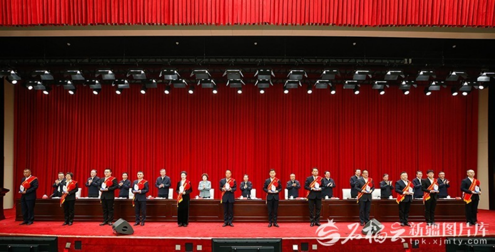 田湘利、伊力扎提·艾合买提江、哈丹·卡宾、张文胜出席,王琳主持。自治区各单位负责同志、先进典型代表等在主会场参加会议。各地州市、县市区设分会场。