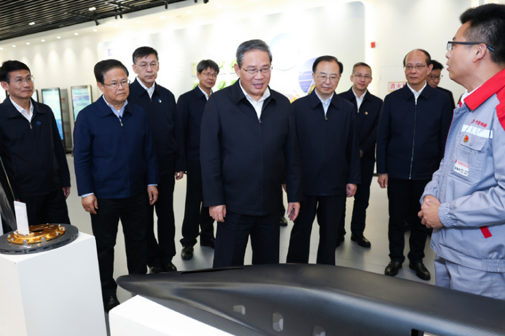 9月15日至16日,中共中央政治局常委、国务院总理李强在甘肃、青海调研。这是9月15日在甘肃兰州,李强来到空间技术物理研究所航天高新产业园,观看最新设备和零部件展示,详细了解相关技术原理和产品产销应用情况。新华社记者黄敬文摄