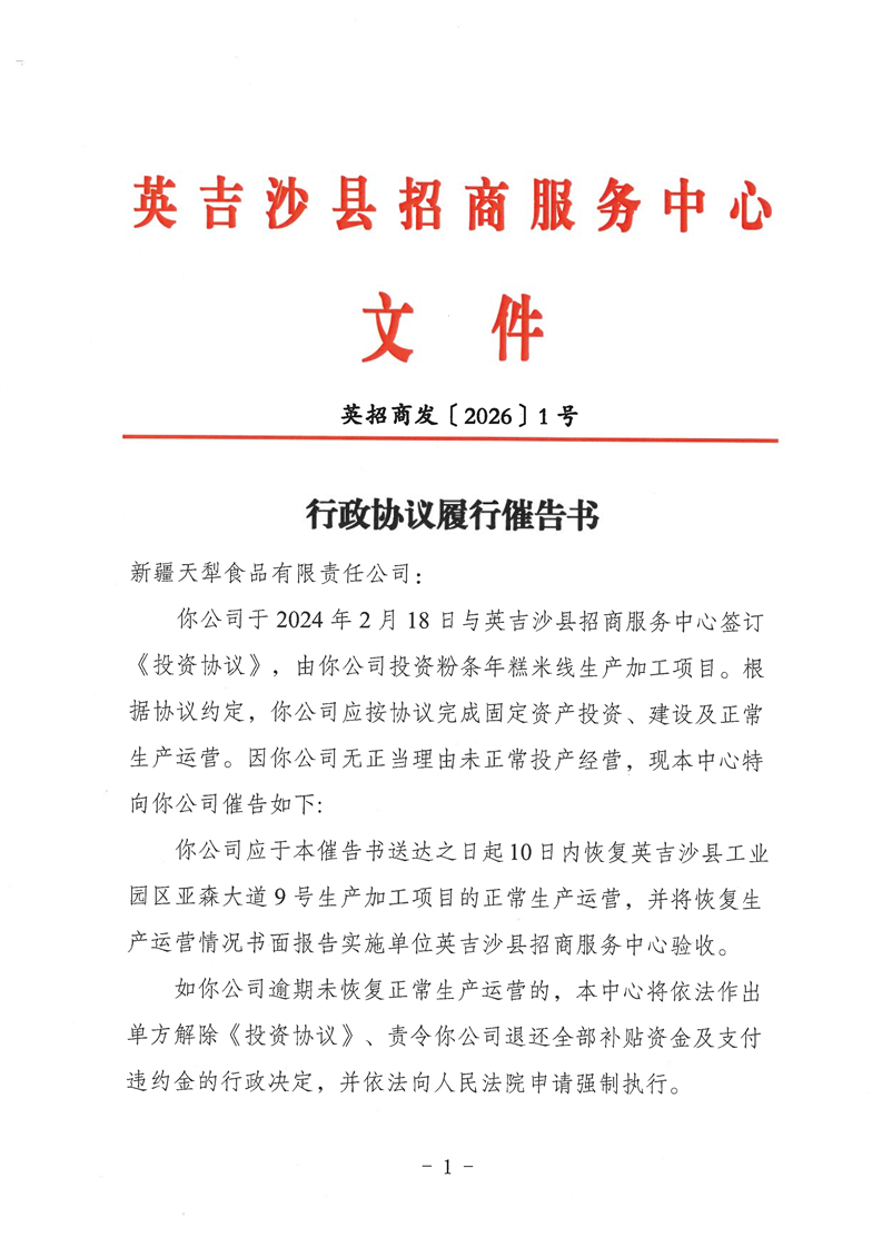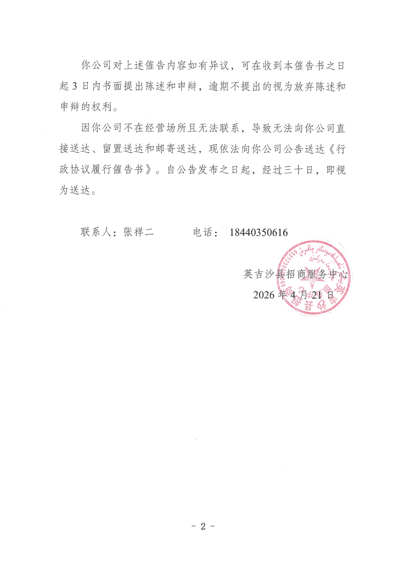 行政协议履行催告书
