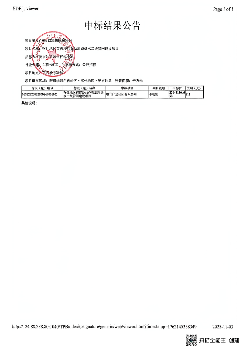 喀什地区英吉沙县乔勒潘路供水二级管网建设项目