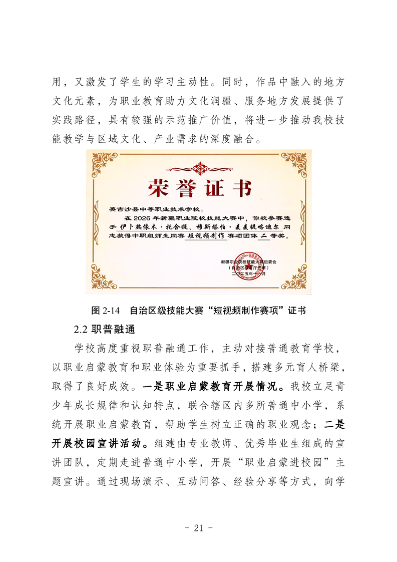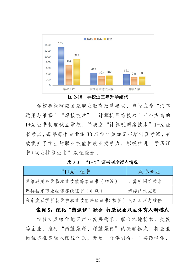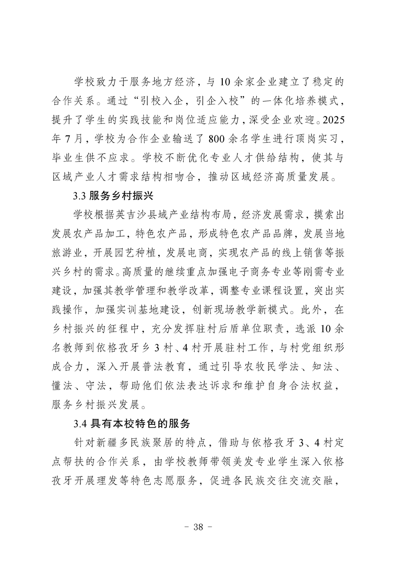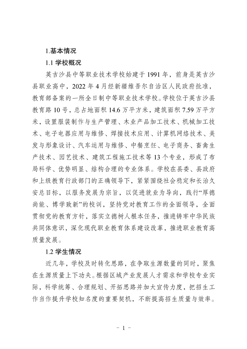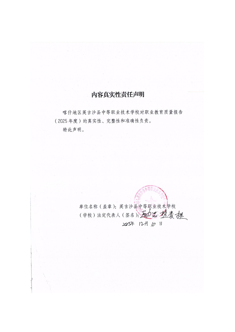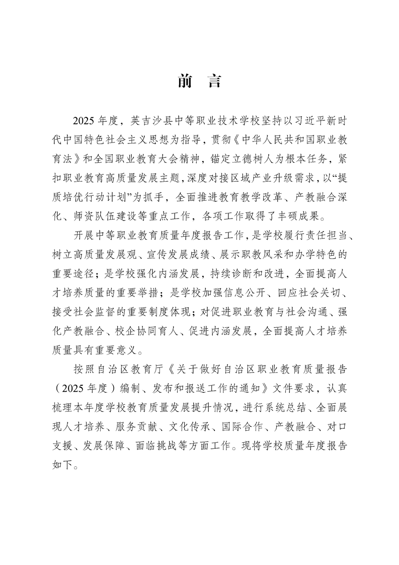 英吉沙县中等职业技术学校中等职业教育质量年度报告(2025年)
