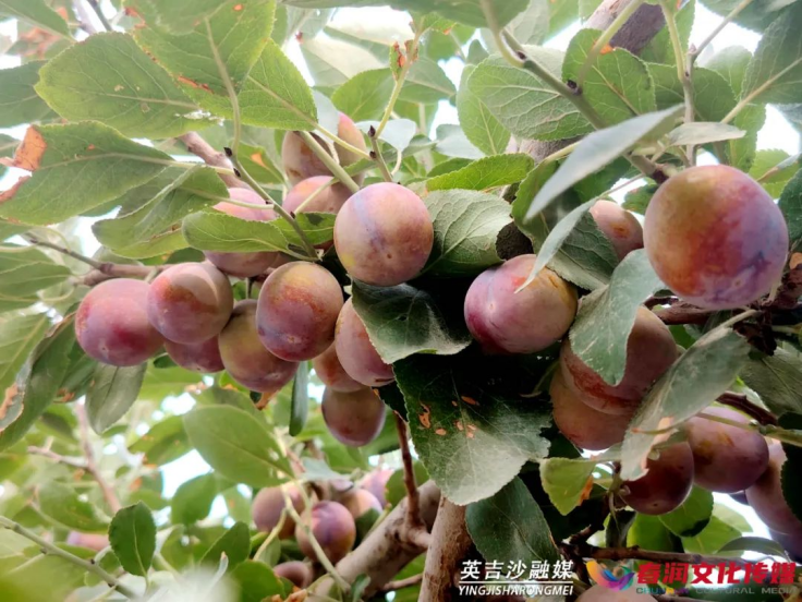 金秋送爽,瓜果飘香。近日,英吉沙县4.9万亩新梅迎来成熟季,颗颗紫红饱满的新梅挂满枝头,散发着甜蜜果香。