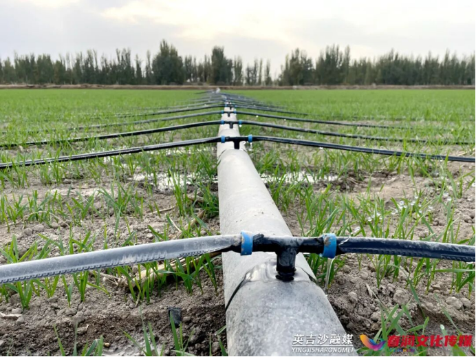 近年来,英吉沙县通过推进高标准农田建设,并配套推广节水灌溉技术,实现了从“大水漫灌”到“精准滴灌”的转变,保障了冬灌水精准直达每株麦苗,让农户切实受益。
